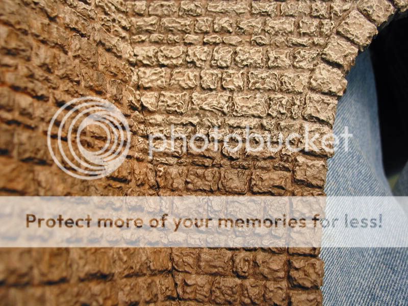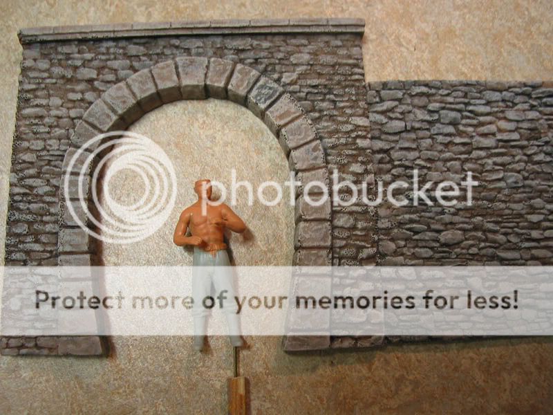 Tot in november 2009, toen ik terug zin kreeg om eraan verder te werken nadat ik het uitstekende artikel in MSM nr 86 las van Jan Nickmans wist ik hoe ik verder moest.  De nodige verven werden aangeschaft en het experimenteren kon beginnen.  Voor ik mij waagde aan het grote portaal, heb ik eerst een poging gewaagd op een mislukt gietstuk in schaal HO (met een 1/35? figuurtje):