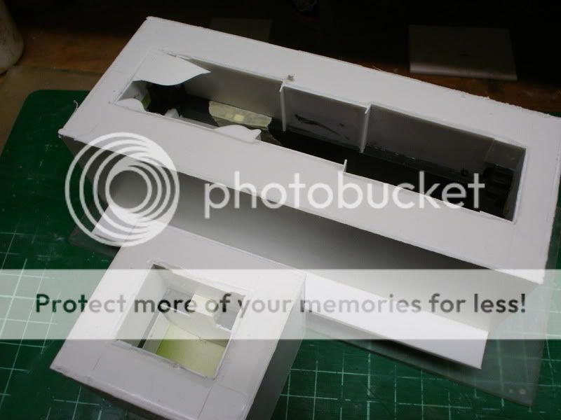 Hier heb ik het ding relatief nauw moeten maken, want er is een vernauwing in de kist, op de plaats waar de cabine er op moet.