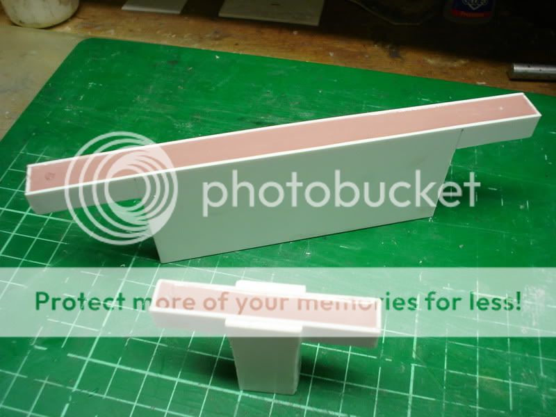 Het is proper gemaakt met plasticard (opnieuw!) en gevuld met resin. Eerst liet ik dat hol, maar de trennspray dat er op moet verzwakte de plasticard en na een zekere tijd ging het kapot[xx(]! Met resin er in is het OK!