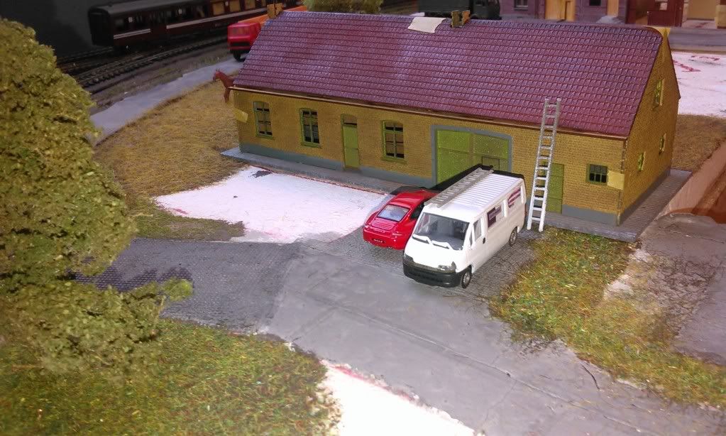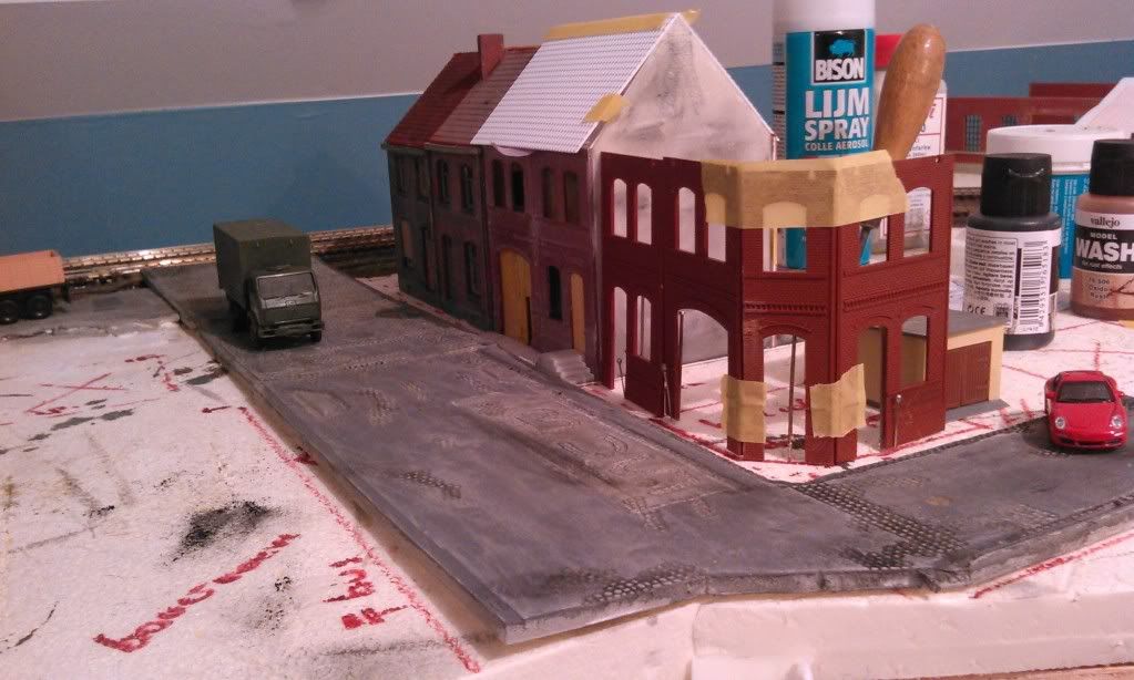 Ondertussen de boerderij van c)tracx eens geschilderd en samengestoken (nog niet verlijmd). Ook de eens het hoekcafe uitgezet, daar zal nog één en ander aan veranderen, nog een garage naast het cafe om de goedern te lossen of een keldergat.