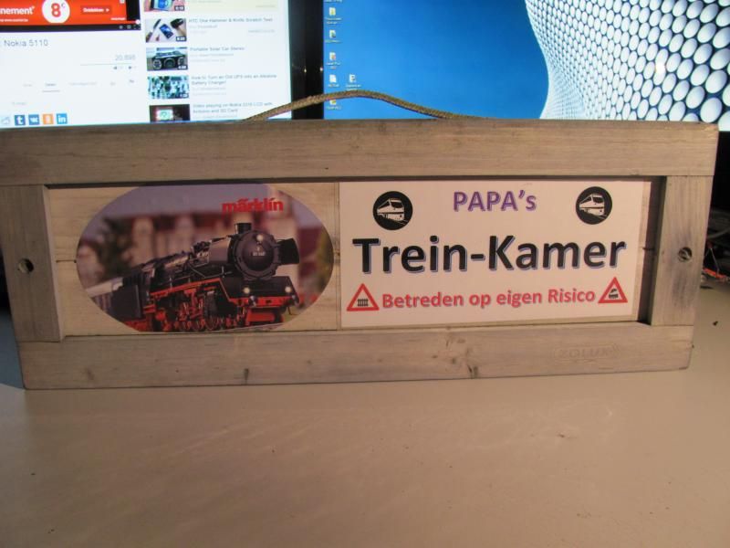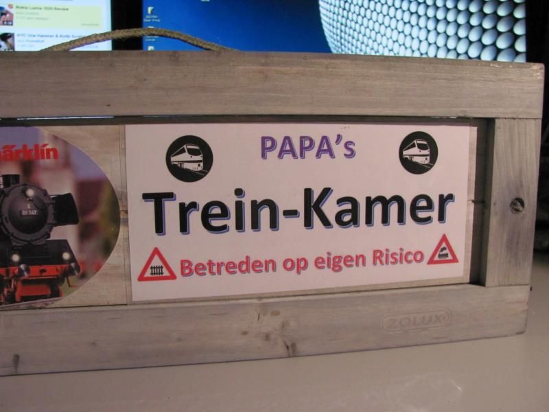 In mijn treinenkamer is het de zoete inval. Kinderen komen er spelen, huiswerk maken of gewoon rondhangen. De vrouw komt er suggestief langs met de was, strijk of stofzuiger. Maar ze komt ook om dagelijks eens te surfen, op internet, en haar berichten te lezen. Geen van hen heeft interesse in het treingebeuren, maar ze weten me wel goed te vinden. Maar of ze de hobbyruimte herkennen als treinkamer, dat weet ik niet. Misschien toch maar eens zo'n bordje ophangen.  ;D