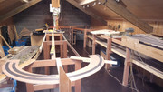 zo de klimspiraal krijgt vorm .eens dit van rails is voorzien kan ik boven op de baan een omloop lus leggen en kan ik het schaduw station gaan testen voor ik verder ga met bouwen