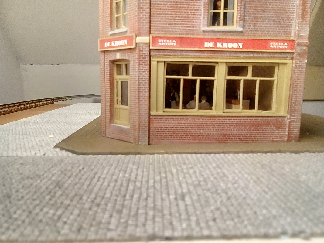 Of ze nou 20x20 of 30 x30 zijn, dat maakt voor het principe niet uit. Als ik door Belgische steden en dorpen fiets is dit een van de dingen waar ik op let, het patroon van de stoeptegels. Dat wisselen van de legrichting bij uitritten is iets wat me is opgevallen. Voor al deze modelbouwzaken geldt: ga naar buiten en kijk hoe ze het daar gedaan hebben.