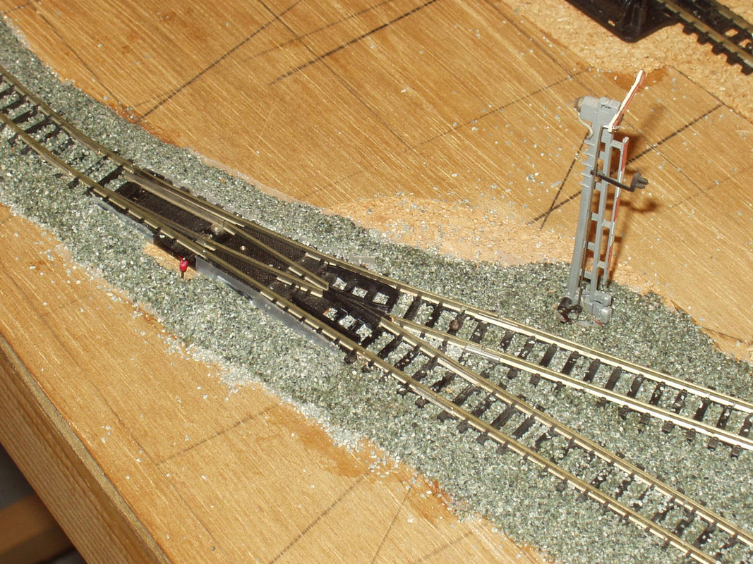 Om te voorkomen dat de lijm in het wisselmechaniek terecht komt heb ik deze afgeplakt.