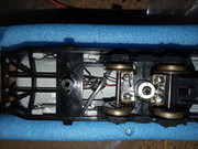 en hier zit dus alles onder in .dit chassis is wel heel dun en dus moest er een plaatsje gefreesd worden om de gelijkrichter in weg te kunnen steken.