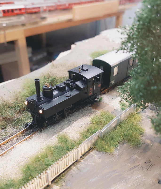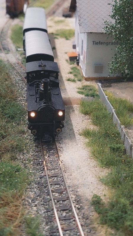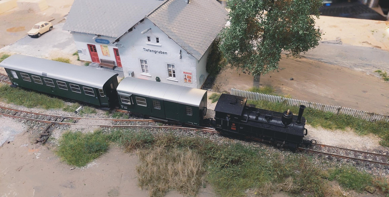 Ik heb nu een aantal ÖBB smalspoorwagons en een 298 stoomlocomotief van Lilliput met geluid, wat erg leuk is bij het rangeren. Ik heb ook nog een Roco 2095 met geluid besteld. Zodat beide geluidslocomotieven echt kunnen fluiten bij de onbewaakte overweg in Tiefengraben en Gams-S.