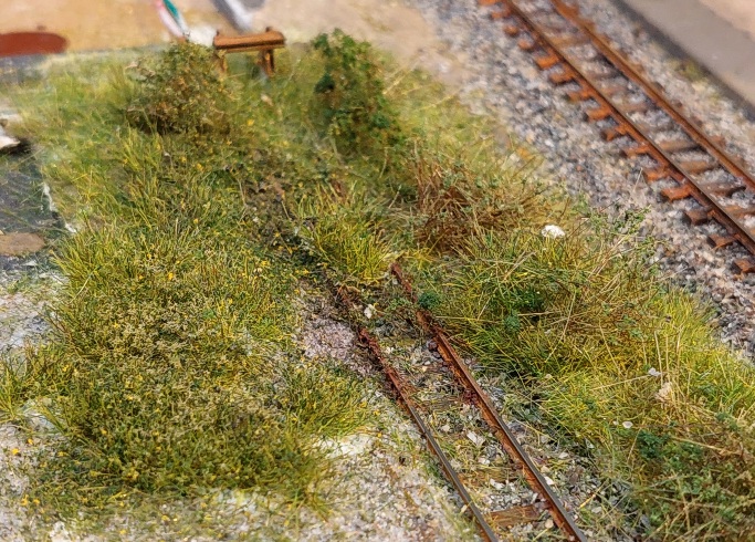Iets andere kijkhoek. De wissel is niet aangedreven, die wordt handmatig omgezet.