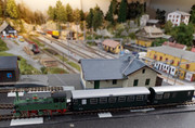 De lok is inderdaad nog fout, maar de ÖBB heeft een reservelok geleend,omdat de ROCO 2095 in mijn gewenste uitvoering er nog niet is. Op de achtergrond mijn grotere hoofdmodelbaan, Sils een RhB BEMO Modelbaan.