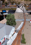 Omdat de zolder ietsie pietsie koeler was, afgelopen zaterdag, heb ik de module met station Gams ook aangekoppeld en technisch gereed gemaakt. Zodoende kon een trein vanuit Tiefengraben ook doorrijden en kopmaken. Tussen Tiefengraben en Station Gams komt nog wel een soort van (in goed NL) Roomdivider. Hierdoor onstaat toch nog een vaag idee van afstand.
