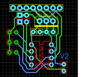 Ik had de print zo gemaakt maar de condensator zit langs de onderkant gesoldeerd rechtstreeks op de pootjes