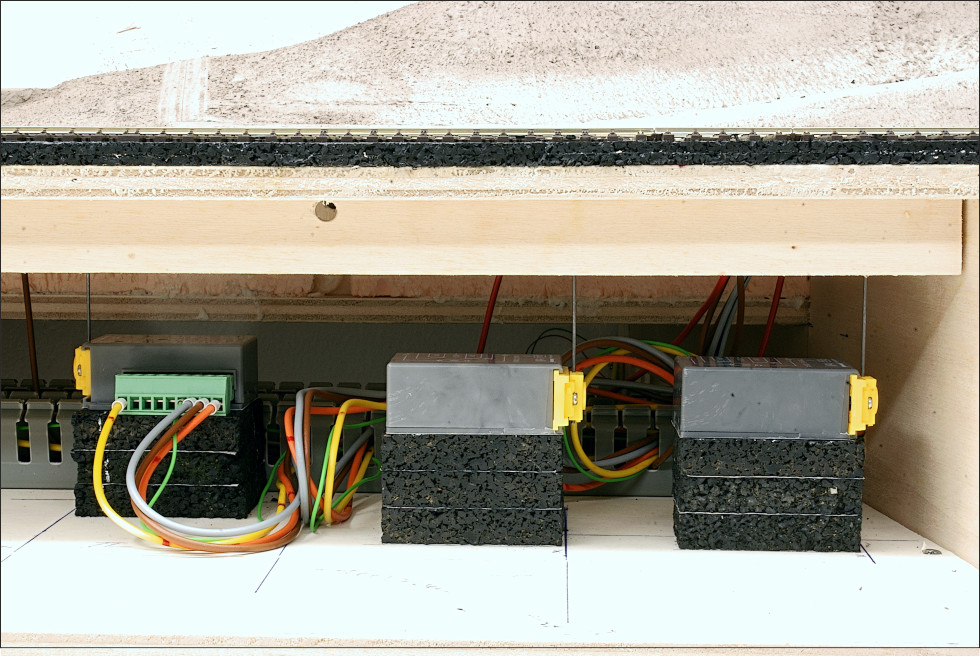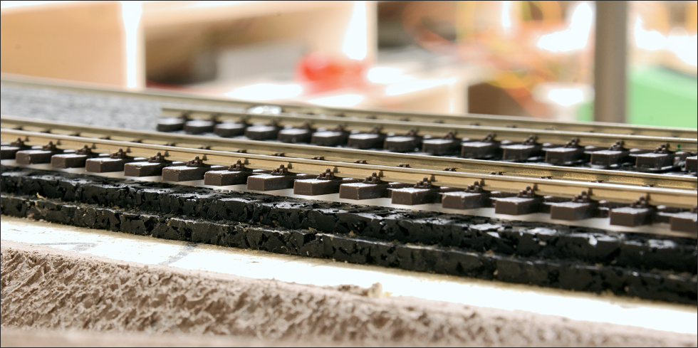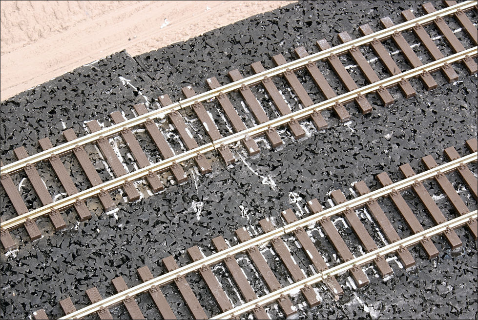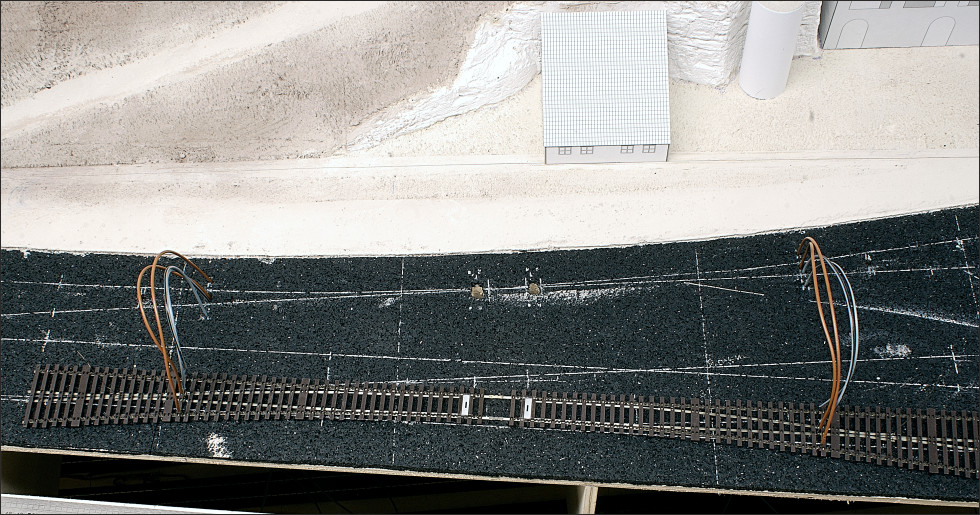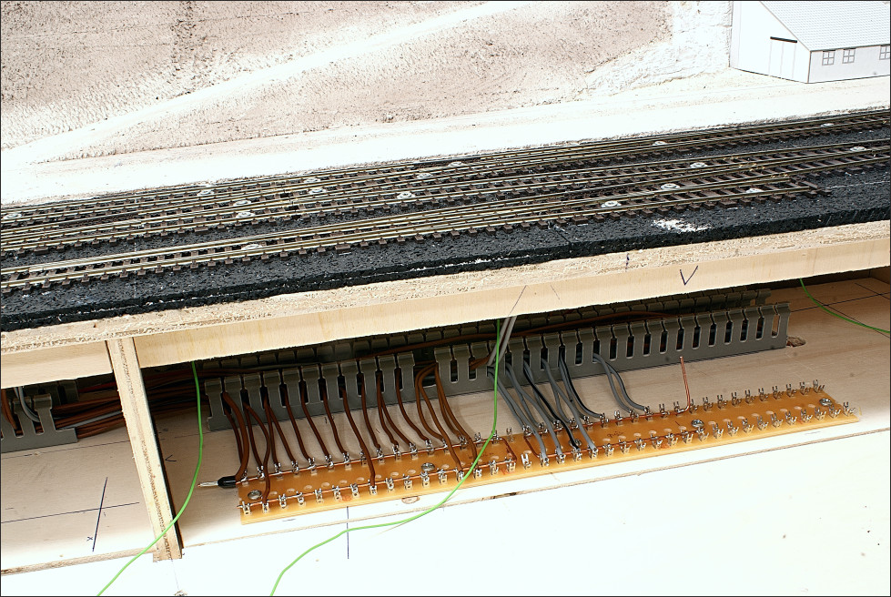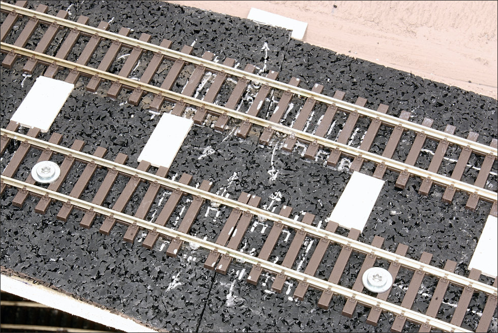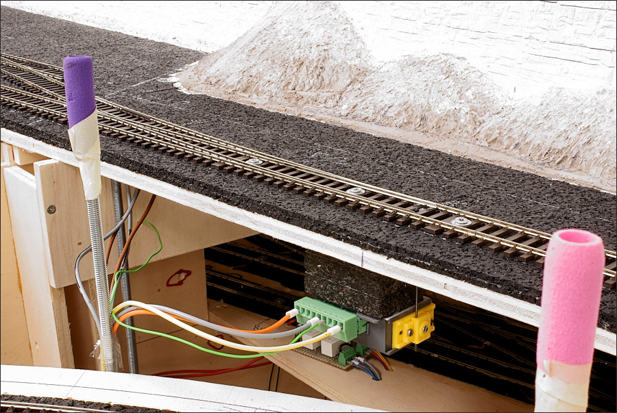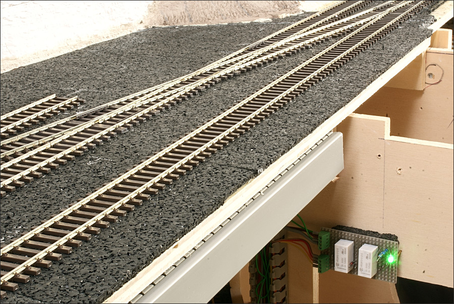 De segmentenovergang is op de bekende manier gemaakt; met schroefjes waarop de spoorstaven zijn gesoldeerd.