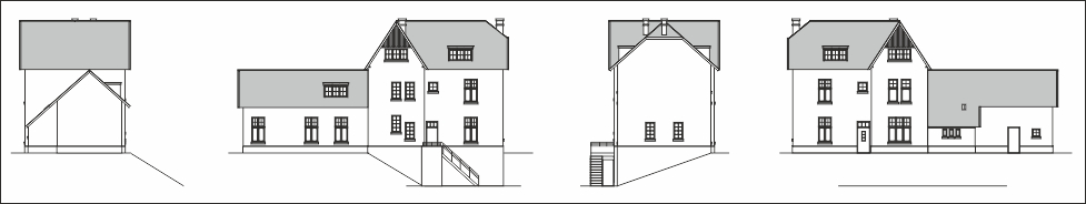 Daarna in je tekening de lijne doorsnijden op de 'gevelplooi', de delen iets uit elkaar trekken en de lijnen een beetje verlengen dat ze uit de geveltekening lopen.