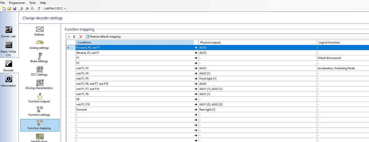 Ik ga proberen om met het JMRI programma de functie mapping te doen zoals jij die voorstelt.