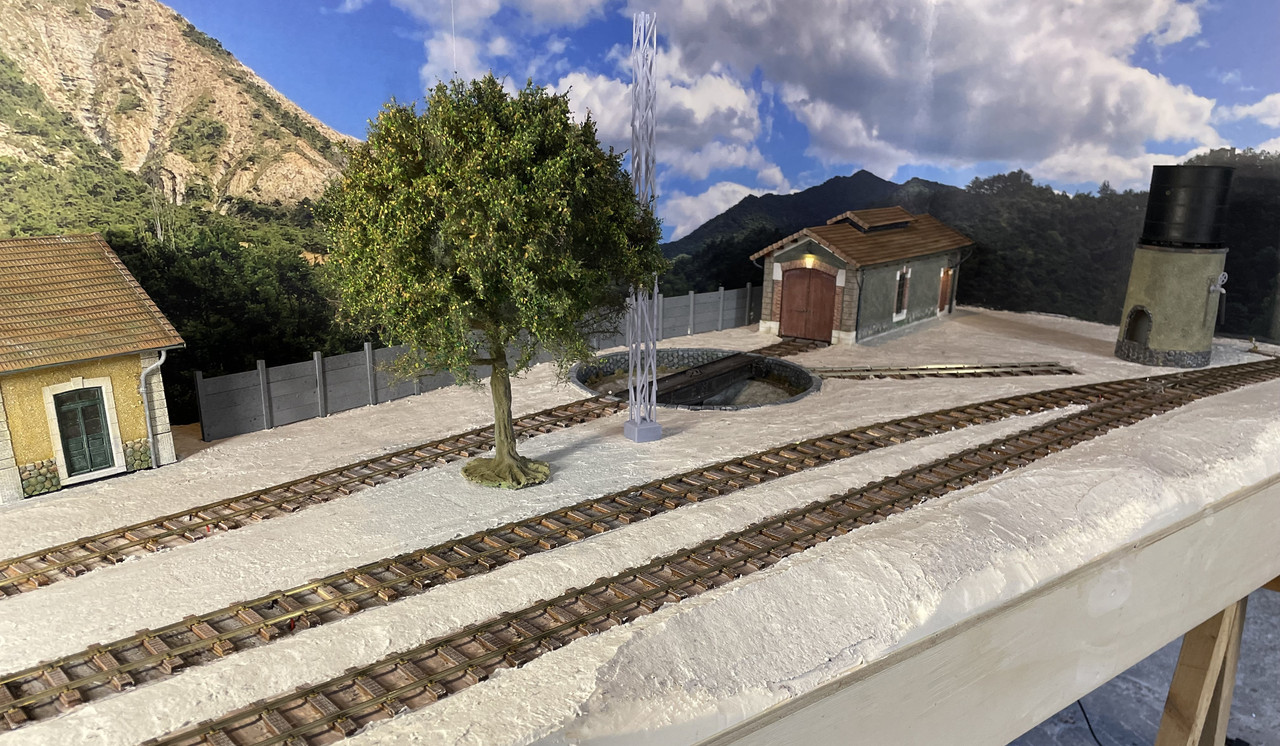 Het station van Lamastre nadert zijn voltooiing en de kuil van de draaischijf is af.