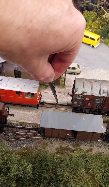 Hier wat detailfoto's van de rollwagen inzet. Rangeren gaat goed. Mits de rails zeer goed gelegd is.